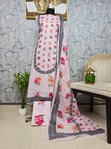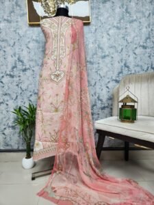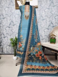 Step into elegance with the Coco Print Lawn Dress, a perfect combination of style, comfort, and quality. The premium cotton body keeps you cool and comfortable all day, while the Proshmi silk dupatta adds a touch of sophistication and flow. Paired with printed cotton pants, this three-piece outfit ensures both style and ease of movement.