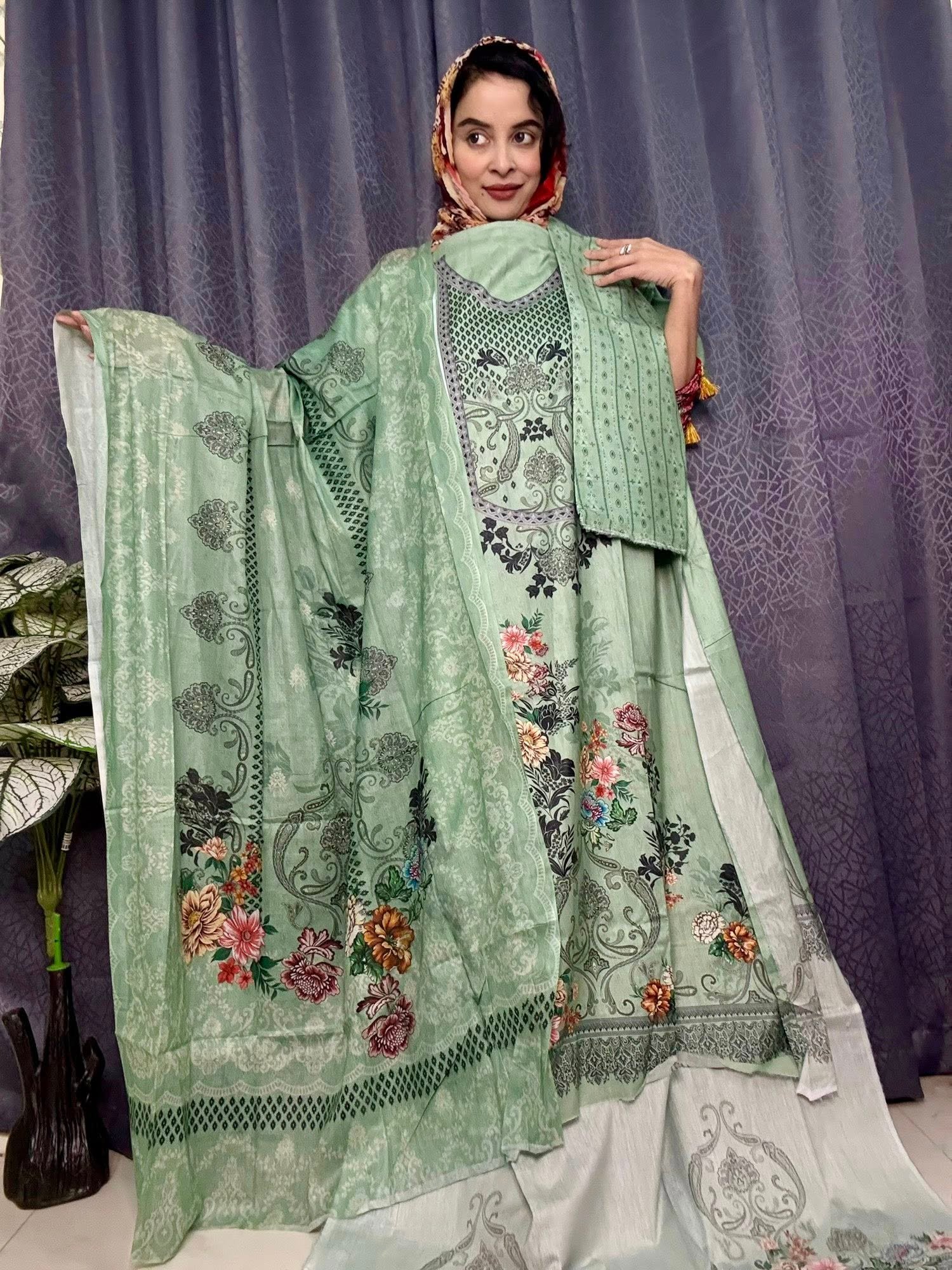 Elegant Premium Pakistani Lawn with pure cotton dupatta for premium taste. Graceful floral design for classy women. Elegant design, soft fabric & color guarantee.
